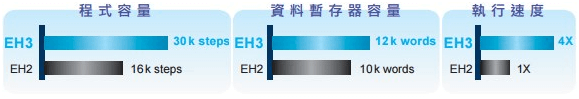 DVP-E系列高階主機(jī),為因應(yīng)更復(fù)雜的應(yīng)用,程序及數(shù)據(jù)緩存器容量加大。